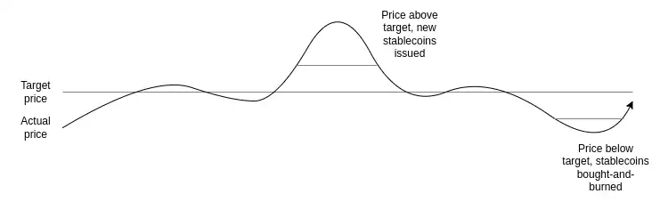 在实践中,(2) 意味着目标机制必须是某种管理加密资产储备的智能合约,并在价格下跌时使用这些加密资产支撑价格。