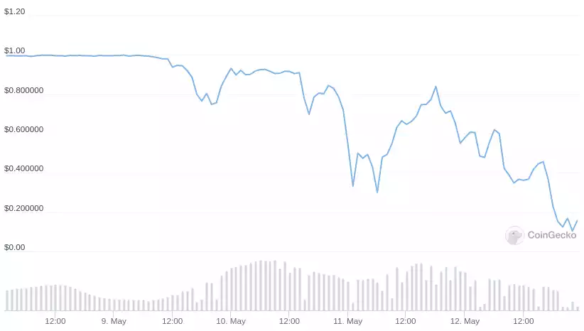 首先,LUNA 价格下跌。然后,Stablecoin 开始摇晃。该系统试图通过发行更多 LUNA 来支撑 Stablecoin 的需求。由于市场信心不足,买家少,LUNA 价格迅速下跌。最后,一旦 LUNA 的价格接近于零,Stablecoin 也会崩盘。