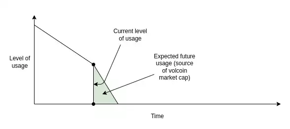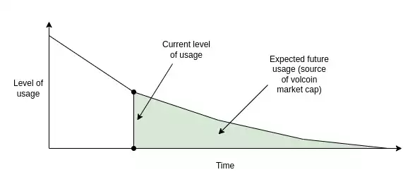 在 Terra 中,波动币 (LUNA) 的价格来自于对系统未来活动费用的预期。那么,如果预期的未来活动降至接近零的水平会发生什么? LUNA 的市值下降,直到相对于 Stablecoin 变得相当小。在这一点上,系统变得非常脆弱: 只要 Stablecoin 的需求受到很小的冲击,就会导致目标机制印刷大量 volcoin(LUNA),这导致 LUNA 过度通胀,此时 Stablecoin 也会失去其价值。