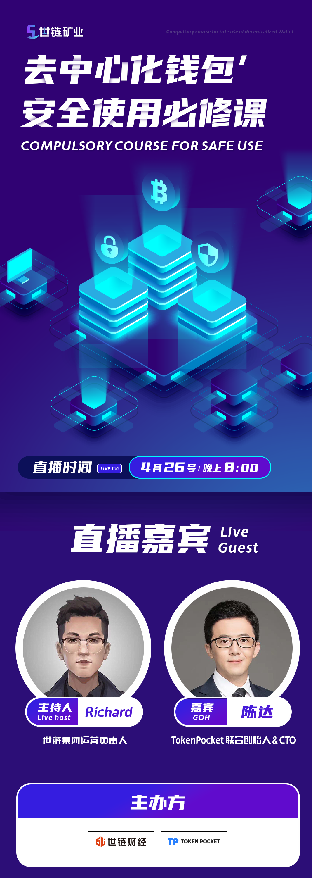 今天,我们很荣幸邀请到TokenPocket联合创始人&CTO陈达做客世链直播间,世链集团运营负责人Richard担任主持人,从各种区块链项目方面临的安全问题出发,全面剖析去中心化钱包安全,讲解区块链钱包安全知识!